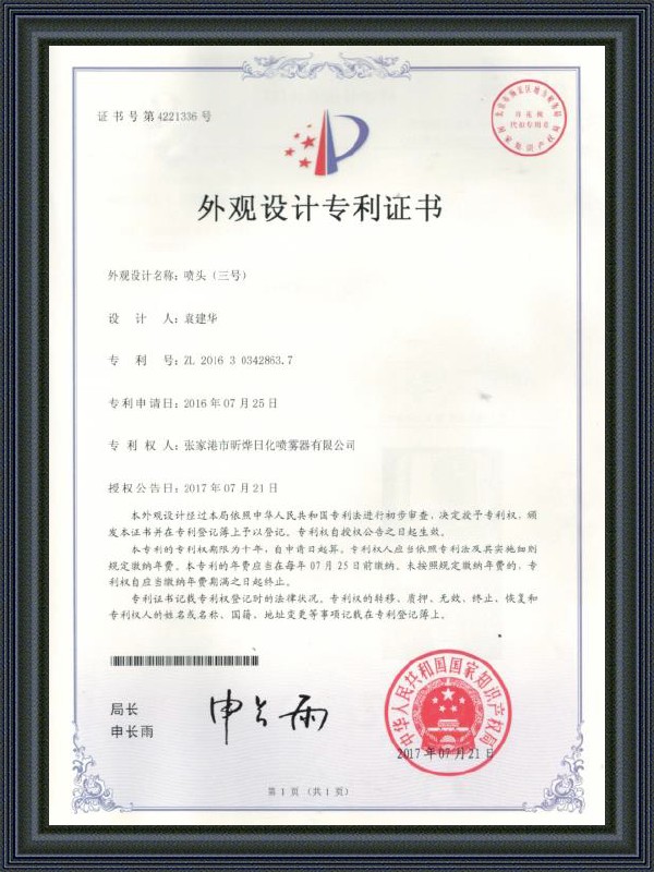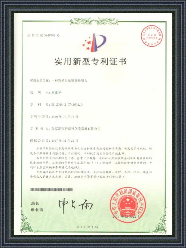 سرهای آبپاش تولید شده توسط این شرکت در سراسر جهان شهرت بالایی دارند. آنها همچنین نه تنها در چین بلکه در خارج از کشور فروخته شده اند. در این بین، این شرکت گواهینامه سیستم کیفیت ISO9001-2008 را دریافت کرده است. دفتر مرکزی این شرکت در منطقه توسعه اقتصادی Le Yu در شهر زیبای Zhang Jiagang که به عنوان مروارید شرقی نیز شناخته می شود، قرار دارد.